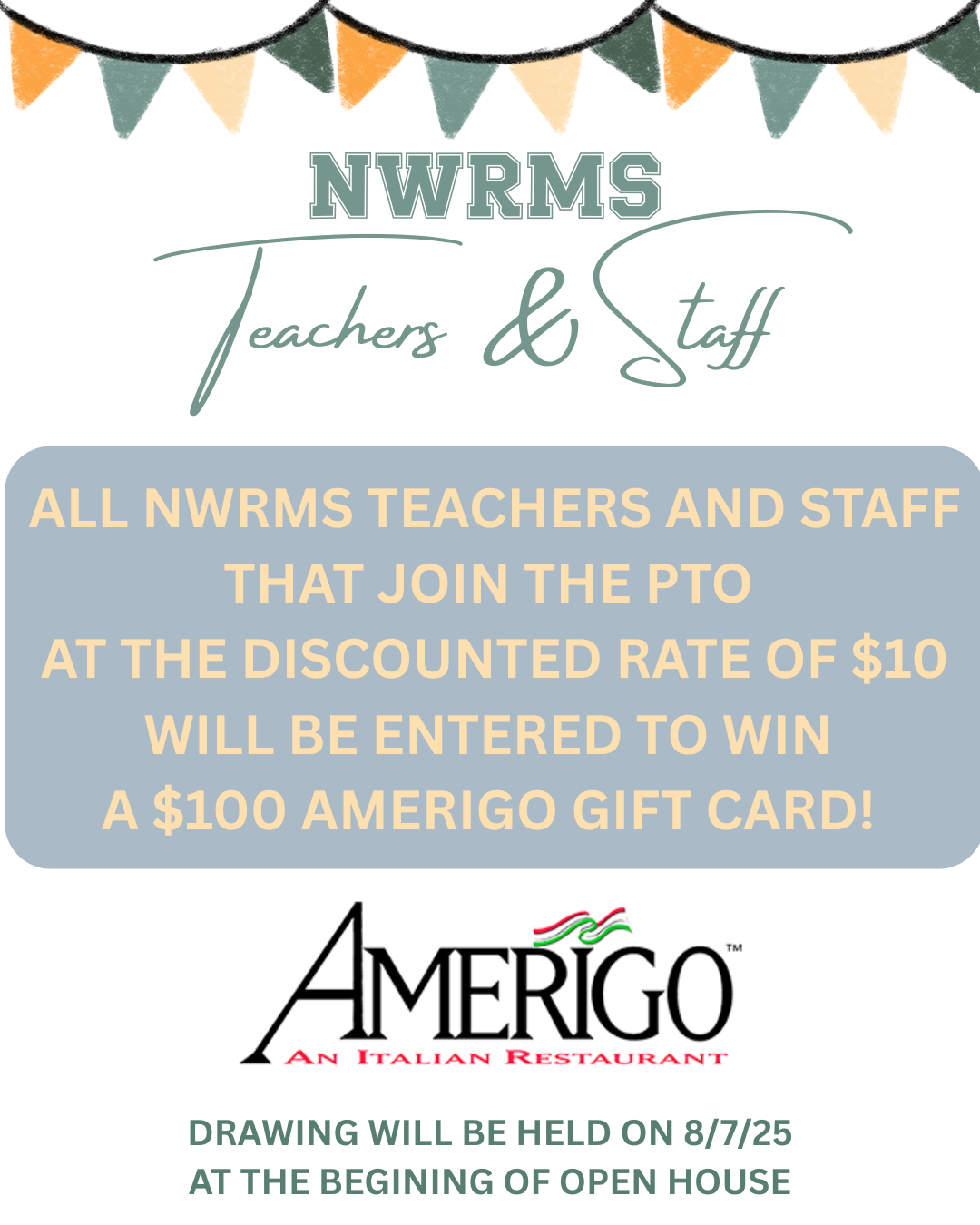 Discounted PTO Membership for NWRMS teachers and staff only.